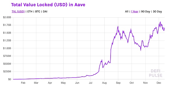 圖:Aave 近一年來的鎖倉資產規模;來源:DeFi Pulse