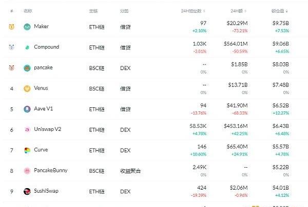 鎖倉量排名前十的借貸平臺排名來源:DeFibox
