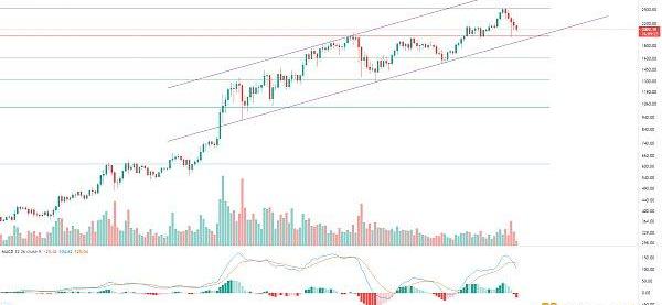 短線調整不影響大局多頭,日線短期支撐1960美金,趨勢支撐1600美金,不有效破就耐心持有,回落附近低吸,后續整理后大概率再創新高。