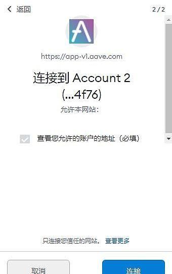 在MetaMask中選擇以太坊錢包的一個賬戶,點擊Next,接著點擊Connect確認連接;