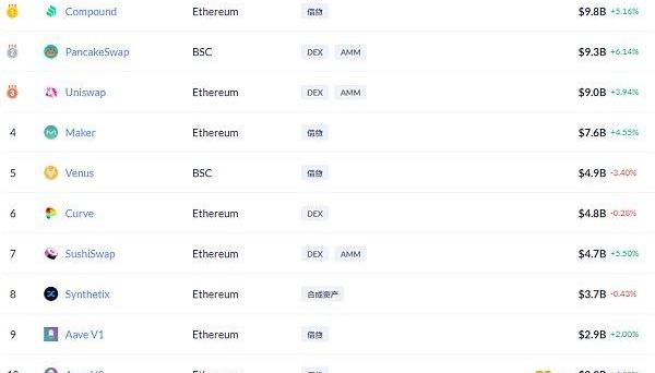 鎖倉量排名前十的借貸平臺排名來源:DeFibox