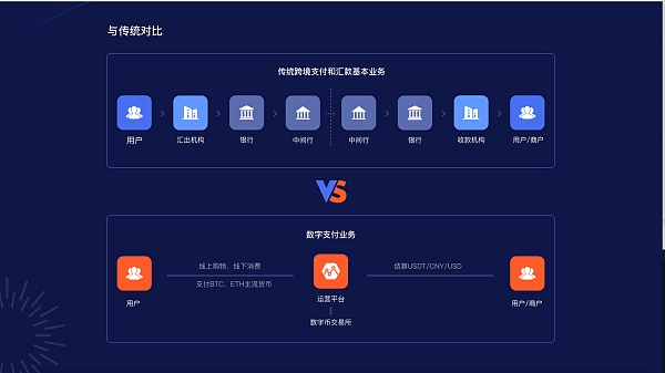 HyperPay推出的HPay系統,將當前市面中已有的加密資產支付產品進行了改良,較傳統跨境支付和匯款基礎業務省卻了繁瑣的中間環節,節約資金周轉時間成本,提供受信的三方背書交易環境: