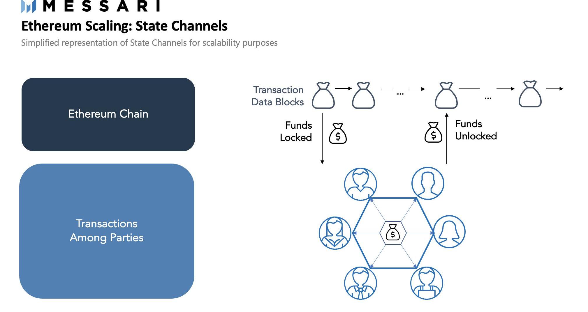 狀態通道允許用戶進行多次脫鏈交易,而僅向以太坊網絡提交兩次交易-一次在打開時提交,一次在關閉通道時提交。這使主網絡擺脫了驗證許多事務的負擔,但提供了相同級別的安全性。網絡中的參與者需要將存款存入多重簽名合同,該合同需要執行閾值數量的簽名。一旦資金存入渠道,參與者就可以根據需要進行多次交易。當參與者不再需要渠道時,他們可以提交結果,等待一段時間以確保對結果沒有任何挑戰,然后在鏈上提交最終交易并解鎖其資金。