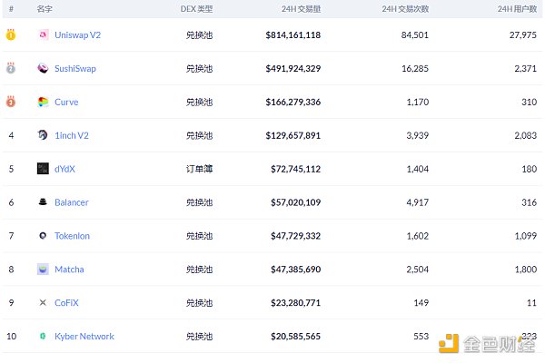 2.過去24小時去中心化交易所的交易量:19.3億美元