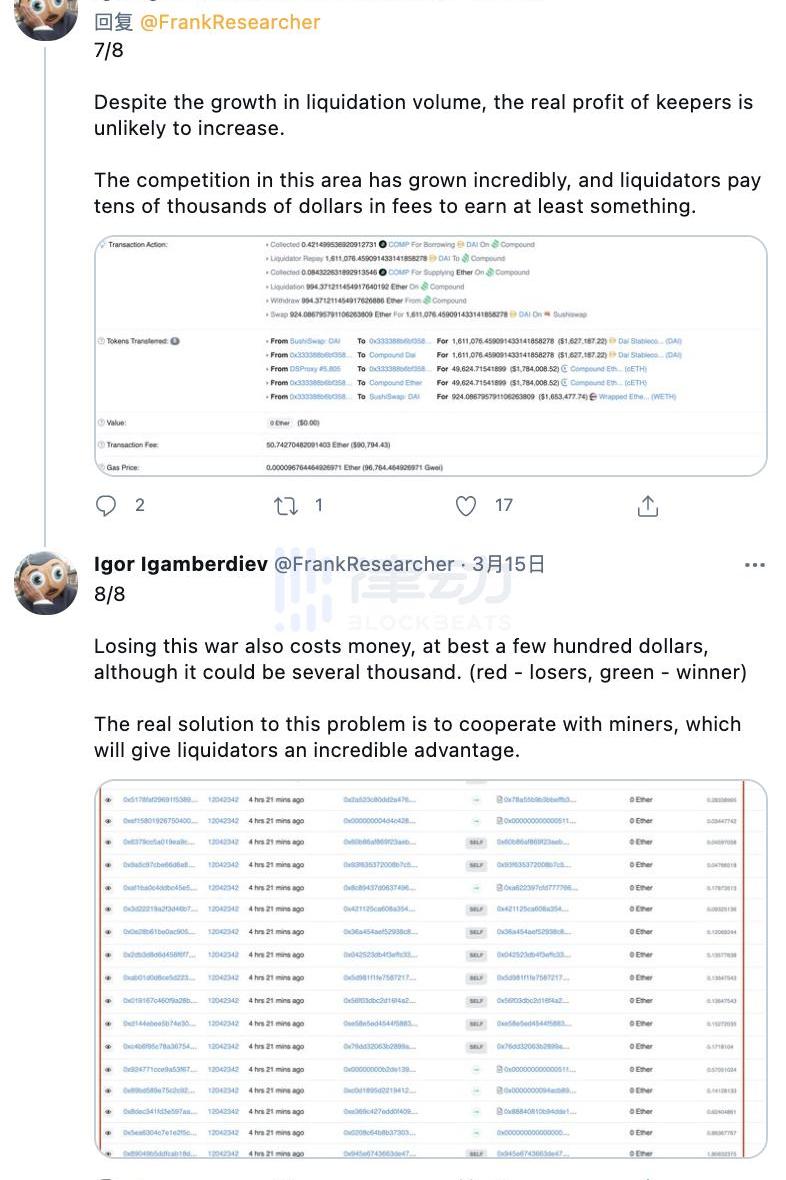有沒有什么協議可以保證套利者和清算人的可用性?通常,提供有競爭力的激勵就足夠了。這些市場參與者所固有的挑戰——互相競爭、Gas優化、MEV——實際上并不是某個具體協議的問題。此外,在正常的市場條件下,競爭異常激烈。