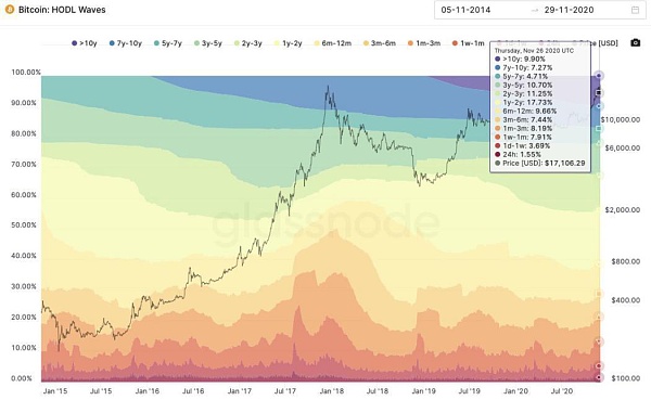 到目前為止,這輪耗竭已經持續了10個月,是上一周期的5個月跨度的兩倍。同樣,從交易所取出并存入冷錢包的比特幣數量占庫存的19%,而上一個周期為11%。考慮到這一點,預計2021年市場會非常樂觀。”
