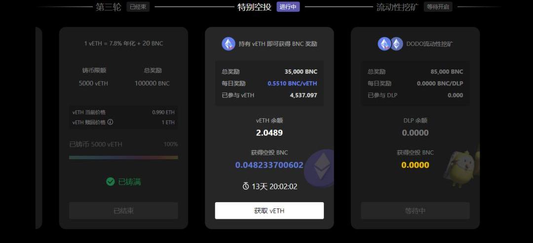 Bifrost目前已經接入了Rococov1平行鏈測試網,且正在舉行vETH的持幣空投活動。