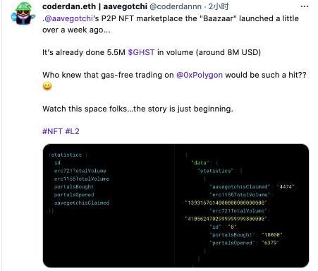 AavegotchiNFT交易平臺Baazaar上線一周,總交易額達550萬$GHST,約合800萬美元!