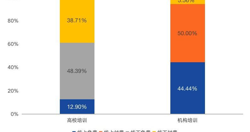(二)培訓課程中,高校類以線下為主,校外機構以收費為主?