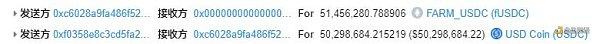 接下來黑客再向Harvest中存入5000萬的USDC,由于上一步USDT兌換USDC的操作,使得Curvey池中USDC價格上升。與此同時,黑客將獲得Harvest所鑄fUSDC,fUSDC的價值將高于當時存入的5000萬,如圖2-1-10。