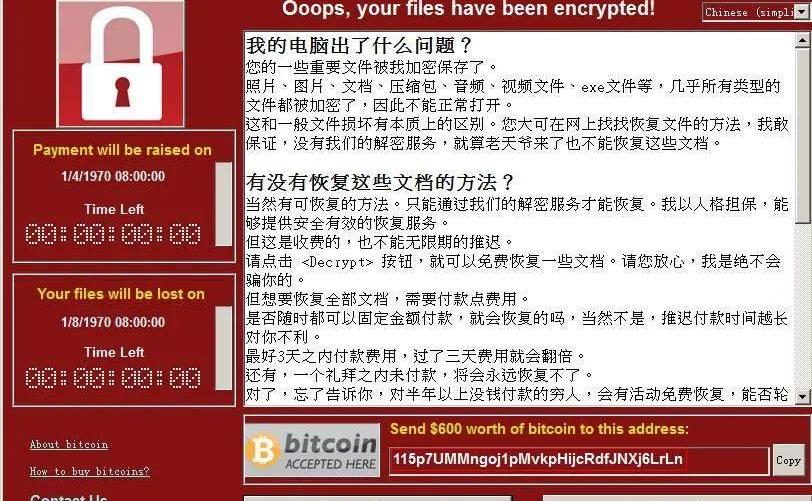 受害者想要恢復自己的電腦資料,必須交付比特幣,作為贖金。迪士尼影業、歐洲各國的銀行、電力系統、通訊系統,以及機場,都被感染。而作為贖金的比特幣,也頻繁登上各國頭版,被普通人所熟知。