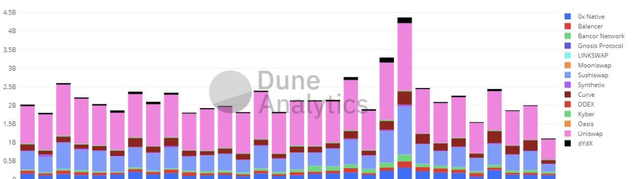 每日DEX交易量。資料來源:DuneAnalytics
