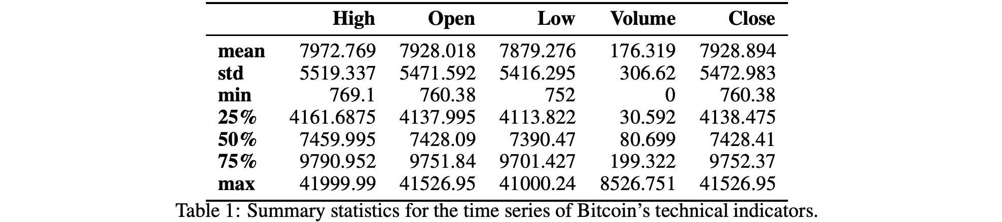 我們將使用以下類別的指標作為輸入:技術指標,如開盤和收盤價格或成交量,交易指標,如根據價格計算的動量和移動平均線,社交媒體指標,即從Github和Reddit評論中提取的情緒要素。