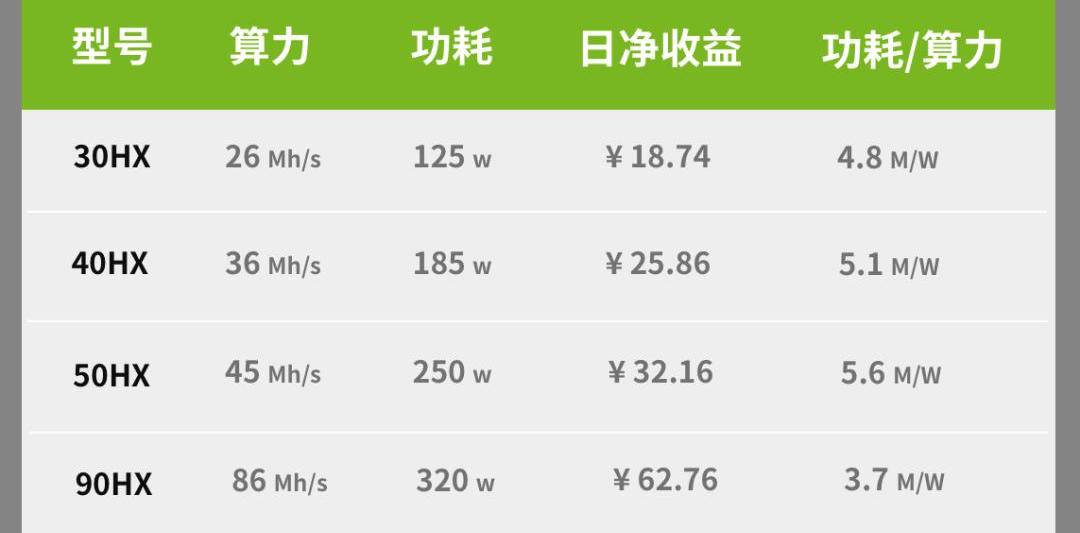 按照CMPHX的規格參數,我們大致可以算出每款卡的收益: