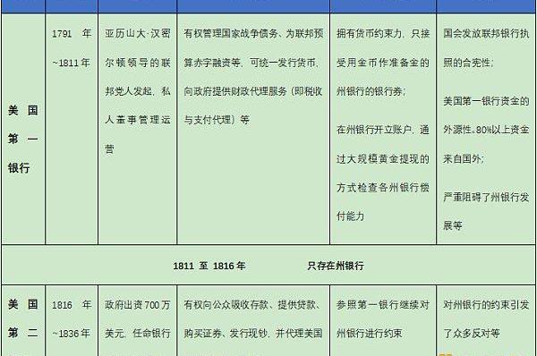 表3??美國第一銀行與美國第二銀行概覽