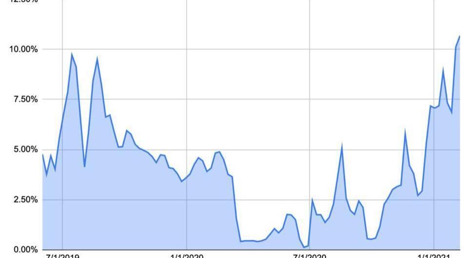 對資產極度看漲的投資者可能希望借入現金購買更多資產,尤其是如果他們預計資產增速將大于為借款所支付的利率。在DeFi領域中這一點非常清楚。dYdX和AlphaHomora等平臺的貸款利率在所有DeFi協議中屬于最高水準,因為這些平臺為借款人創建了非常簡單的方式,使借款人將借來的這些資產用于杠桿頭寸。
