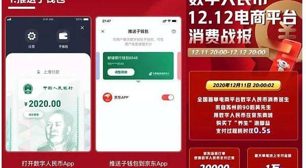 三、首次引入線上電商場景。數字人民幣的電商交易場景是在本次試點中首次亮相的,本次試點的消費者可在數字人民幣APP中向指定商戶主動推送數字錢包“子錢包”,就可在相應平臺使用數字人民幣支付。在此次試點中,參與測試的工、農、中、建、交以及郵儲六家銀行的數字錢包均可推送至京東APP。此外,選擇工行錢包的消費者還可在美團單車、滴滴出行中使用數字人民幣紅包,建行錢包可在善融商務中使用,中行則可在嗶哩嗶哩中使用。