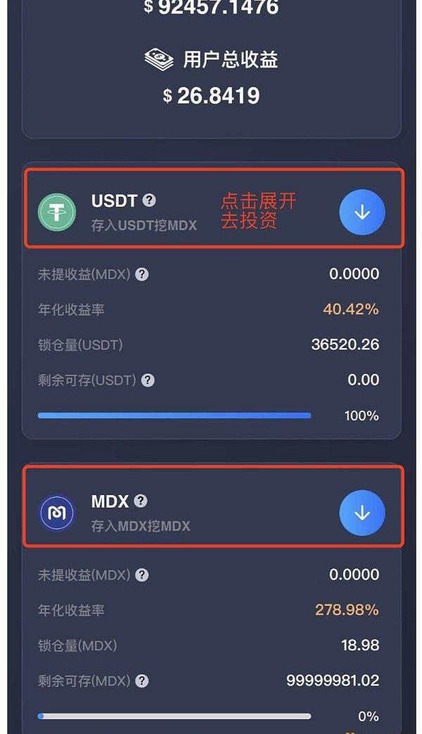 按比例或手動進行存款,存款成功后即開啟挖礦;