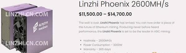 據Linzi官網,LinziPhoenix礦機售價為14700-11500美元。按時間順序遞減,比如2月份發貨價格則為14700美元。不過2月份礦機已經售完。