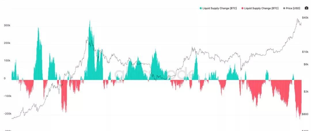 同時,從交易所比特幣錢包監控來看本次比特幣調整過程中,雖然比特幣流出交易所錢包的趨勢嚴重放緩,但并未出現鏈上比特幣大幅向交易所流入的跡象,從LiquiditySupplyChange的指標來看,目前比特幣仍然處于巨鱷堅定吸籌,持倉籌碼趨于集中的健康過程中,距離歷次牛市頂峰比特幣持倉大量換手分散的跡象仍然非常遙遠,我們認為目前牛市的前戲已經準備的非常充分,28000美元一線的短期底部已經探明,最可觀的上漲行情即將到來,接下來幾個月的后市非常值得期待,比特幣預計將在春節后開啟上攻55000美元一線的新攻勢。