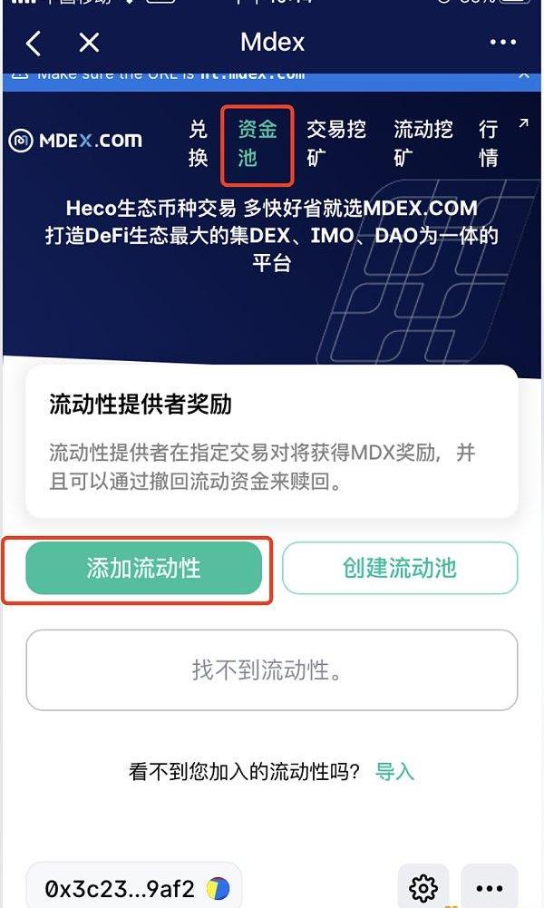 1、導入成功后,可通過火幣往提取Heco資產至錢包,點擊“發現”按鈕,在頂部輸入LendHub官網鏈接官網。
