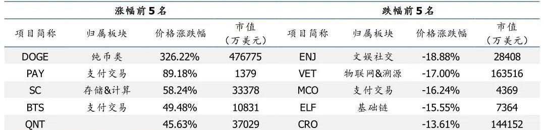 從細分板塊來看支付交易、存儲&計算、純幣類表現優于ChainextCSI100平均水平,為8.29%、45.03%、4.67%;物聯網&溯源、文娛社交、商業金融、基礎增強、基礎鏈、AI表現遜于ChainextCSI100平均水平,為-17.00%、-0.41%、-1.97%、-6.28%、-4.29%、-5.18%。