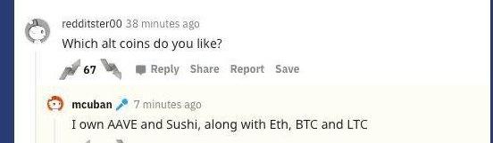 Cuban回應稱,他目前分別持有Aave和SUSHI。