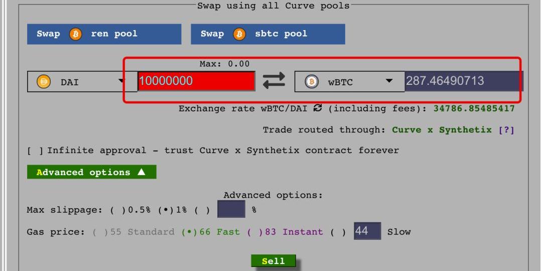 不過,最近Curve交易平臺上線的跨資產兌換平臺,集成Synthetix的虛擬合成資產交易功能,大幅改善了大額交易下的滑點問題。