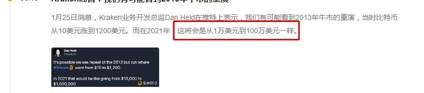 這個觀點特殊的地方在于:不是和2017年對比,而是和2013年對比,也就是對標到上上個牛市。Kraken高管的意思就是上次牛市漲的太少了,2017年年初1000美金,牛市最高點19500美金,不到20倍的漲幅。2013年的時候10美金直接殺到1200美金,120倍的漲幅。按照這位高管的推算,這次牛市比特幣將會超過100萬美金。也就是說現在投資比特幣現在價格不到33000美金,這次牛市還有30倍漲幅。