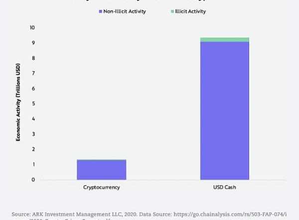 ARK認為,批評比特幣促進犯罪活動就是批評其基本的價值主張之一:抗審查性。比特幣作為一種中立技術,允許任何人進行交易,且無法辨別使用者是否為「犯罪分子」。比特幣以密碼學加密的私鑰和地址取代了中心化機構通過IP地址和姓名來辨別用戶,這賦予了比特幣強大的審查抵抗能力。只要參與者向礦工支付費用,任何人都可以隨時隨地進行交易。一旦交易通過結算保障期,交易將無法被輕易回滾。