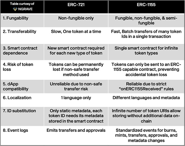 Enjin聯合創始人兼CTO Witek Radomski開發了ERC-1155。ERC-1155是一個新的標準,它允許一個智能合約來管理無限數量的代幣。與ERC-721代幣標準不同的是,ERC-721代幣標準只能產生NFT,并迫使開發者為每一個新的代幣部署一個新的智能合約,ERC-1155代幣標準允許開發者部署一個單一的智能合約,然后在幾秒鐘內無限次地鑄造新的代幣(可互換和不可互換)。ERC-1155合約現在已經為40多款游戲提供了動力,因為為一款游戲制作的合約可以靈活地包含各種各樣的物品,從武器和盔甲到健康藥水和超能力。然而,ERC-1155并不只是用于游戲,可以應用于各行各業。