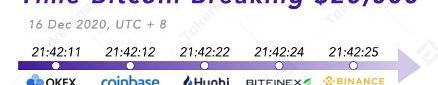 是誰先動的手??比特幣價格突破兩萬,創下歷史新高。在火熱的市場行情下,TokenInsight對Binance,Bitfinex,Coinbase,Huobi,OKEx五個交易平臺在比特幣價格首破兩萬美金時的數據表現進行了觀測和分析,發現了一些有趣的現象。