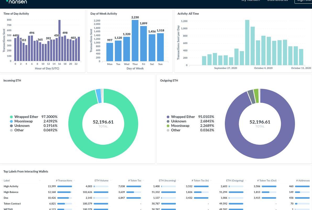 使用Nanse,向用戶展示了一個高級的鏈上套利者的0x0000000000007f150bd6f54c40a34d7c3d5e9f56的數據情況。