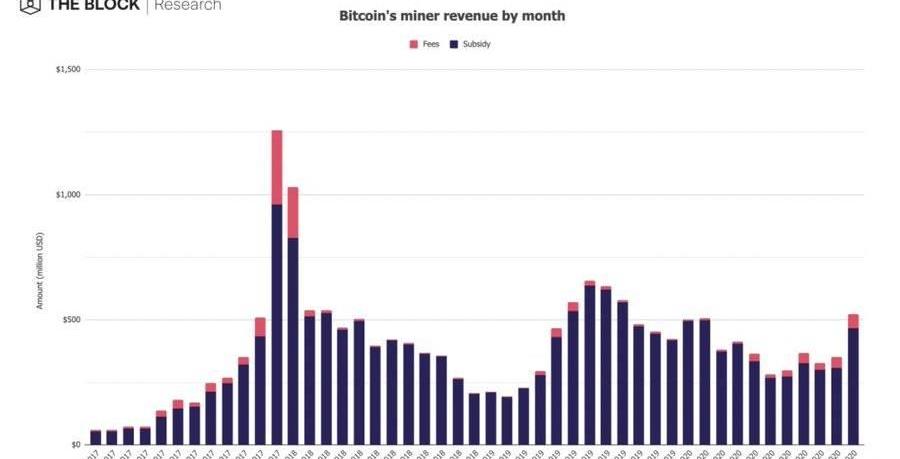 比特幣礦工在11月創造了5.2億美元收入,較上月大幅增長48%,這是自2020年2月以來礦工所獲得的最高單月收入,甚至高于比特幣區塊獎勵減半之前礦工的單月收入。