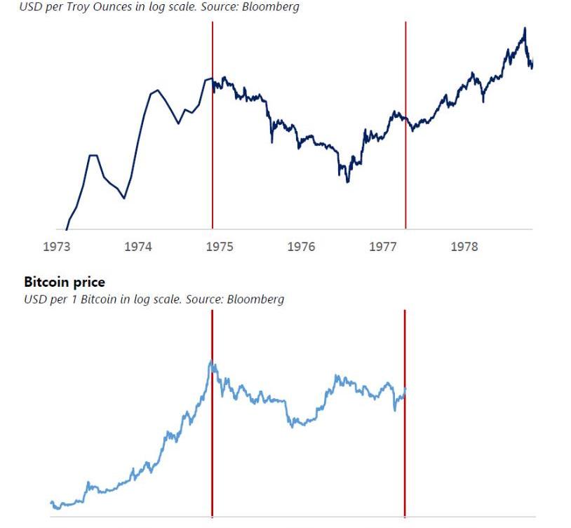 不論我們是否在1970年代,但由于需求的增加以及與黃金相關性的下降,比特幣很可能會擺脫這樣劇烈回調的波動。