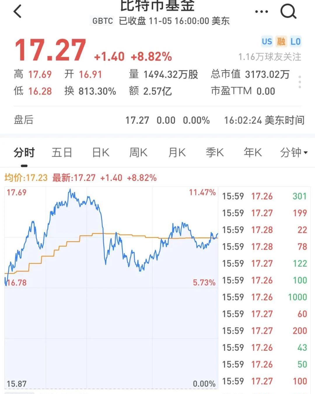 比特幣突破兩年多新高,專門投資比特幣的GBTC基金也大漲了。