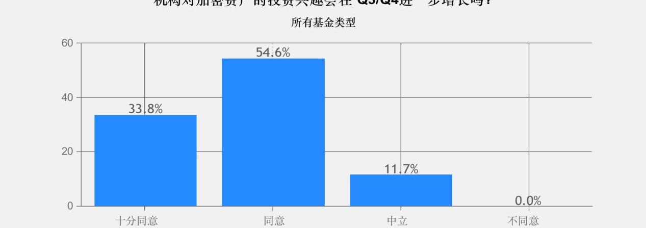 86%的受訪的基金認為,機構對各類加密資產表現出投資意愿,并且他們相信機構對加密資產投資的意愿在第三季度有所增長。