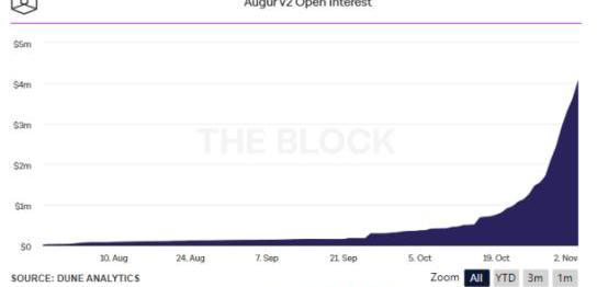 再看去中心化預測市場,Augur月初未平倉合約量突破400萬美元,Ploymarket應用內單單與選舉相關的交易量就達到$350萬以上的水平,相當于該平臺總交易量的91%。不僅如此,去中心化金融市場的預測版塊也異常火爆,在DEX交易量下降超25個百分點的10月,DeFi預測市場卻能逆勢增長,一躍成為去中心化金融市場中增長最快的版塊。