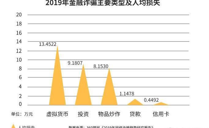 另據《2019年網絡詐騙趨勢研究報告》顯示,由虛擬貨幣帶來的詐騙已成為金融詐騙的主流,造成的人均損失超過13萬元。