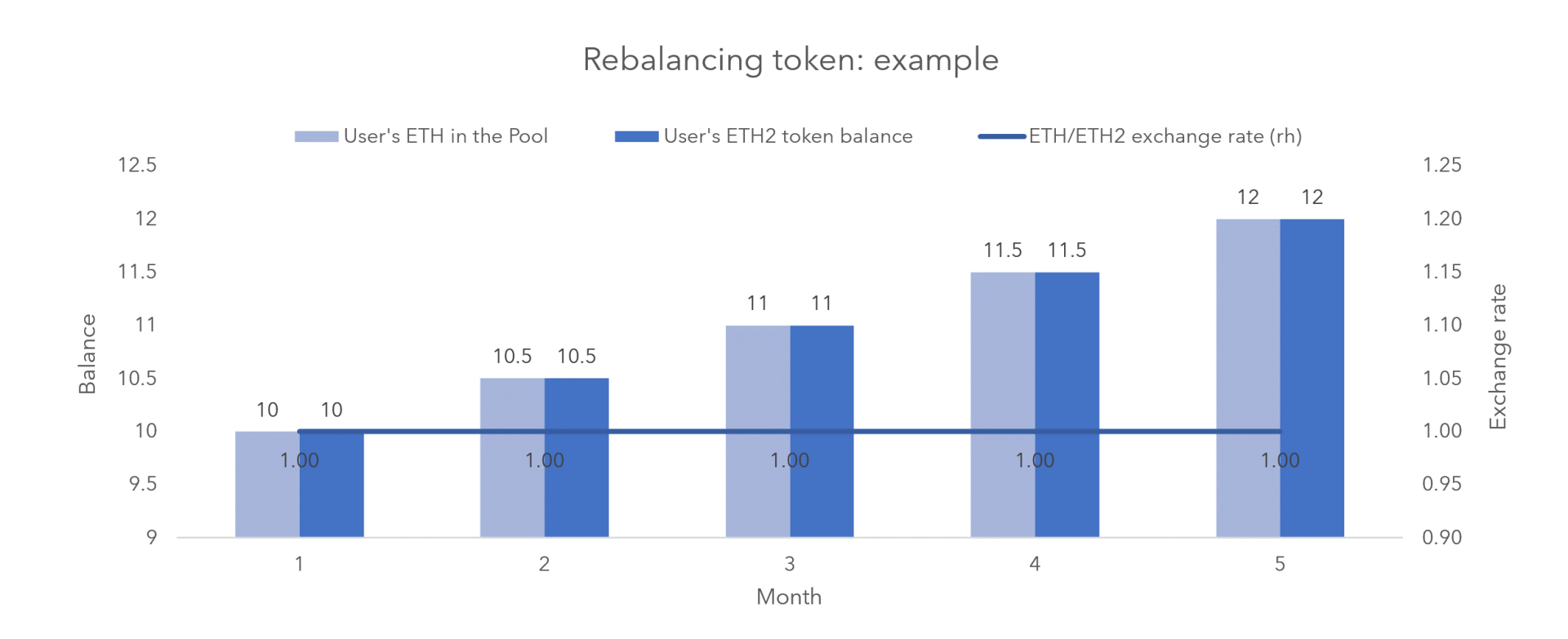 單一代幣結構基于重新平衡或重新定價代幣概念。這是最流行的設計,大多數質押池均使用該策略,可能是因為它的簡單性。通過在用戶存款時發行出一個單一的代幣,質押池尋求在同一個代幣中實現獎勵和懲罰的權責。這可以通過兩種方式來實現: