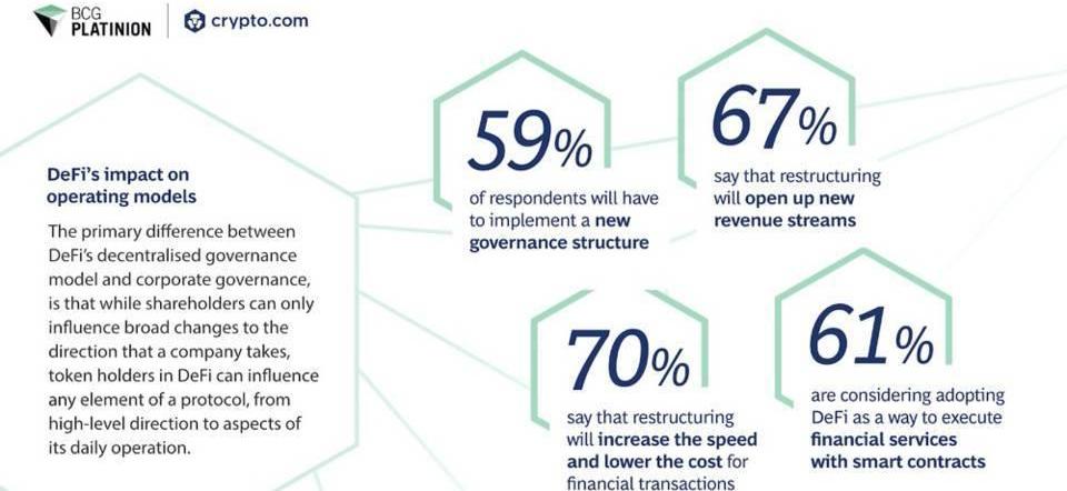 61%的受訪公司正在考慮采用DeFi作為智能合約執行金融服務的方式。