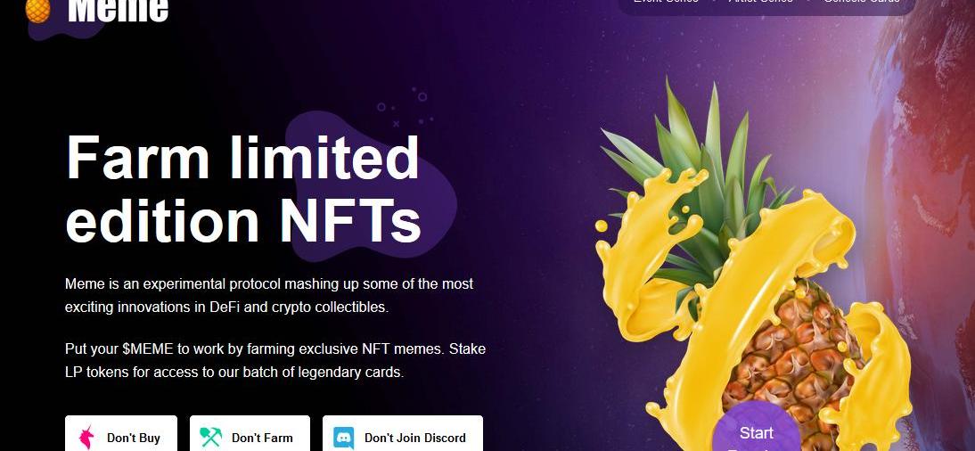 MEME項目也被國內社區稱為“菠蘿”項目,最初是ConsenSys的DeFi產品負責人JordanLyall用來諷刺DeFi而開的一個玩笑。8月15日,JordanLyall在推特上諷刺道,隨隨便便一個Emoji當Logo,然后改下合約就能創建一個DeFi出來。“可能只需要5分鐘,就可以發布一個假的DeFi項目”。后來借此玩笑,社區真的創建了MEME幣,并引入了流動性挖礦設計:質押MEME代幣的用戶,可以獲得菠蘿積分,該積分可換取NFT收藏卡。這種收藏卡,可以直接掛到OpenSea銷售。