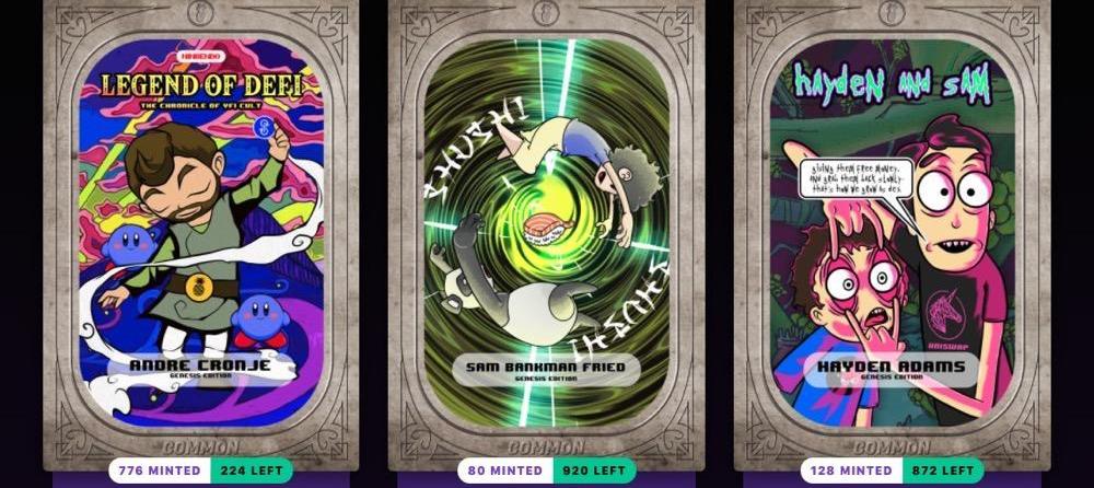 目前由于社區強大的創造力和共識,該項目現已開啟用戶可以押注MEME即可賺取不可轉讓的菠蘿積分。這些菠蘿點可用于鑄造各種稀有的NFT,且每個賬戶可以質押的MEME上限為固定數量。同時,MEME項目緊緊跟隨加密社區的極具特色的圖騰文化,目前NFT都為加密貨幣領域的名人卡片,包括以太坊聯合創始人VitalikButerin、Yearn.finance創始人AndreCronje、FTX及AlamedaResearch創始人SamBankman-Fried等知名人物。