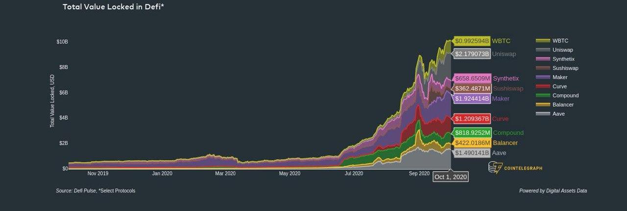 據Cointelegrah報道,當比特幣和以太坊在9月下旬開始回落時,DeFi代幣相繼暴跌。然后,美國總統唐納德·特朗普意外確診新冠肺炎,給DeFi市場帶來額外壓力。