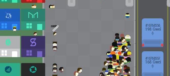 對于比特幣的區塊來說,則大部分時間交易都在等待過程中,可以看到車的旁邊會有很多交易在排隊,同時在平均約10分鐘的時間里,后面還陸陸續續的增加了很多卡通人物繼續加入到隊伍之中,其中一部分排在隊伍前面,一部分在隊伍后面,其實這是代表了不同交易手續費的優先級別不一樣,交易費高的則優先打包,進入車中,而交易費低的則推遲打包,更低的則將繼續等待下一個區塊的打包,有的交易甚至要過一兩天才能被打包完成。