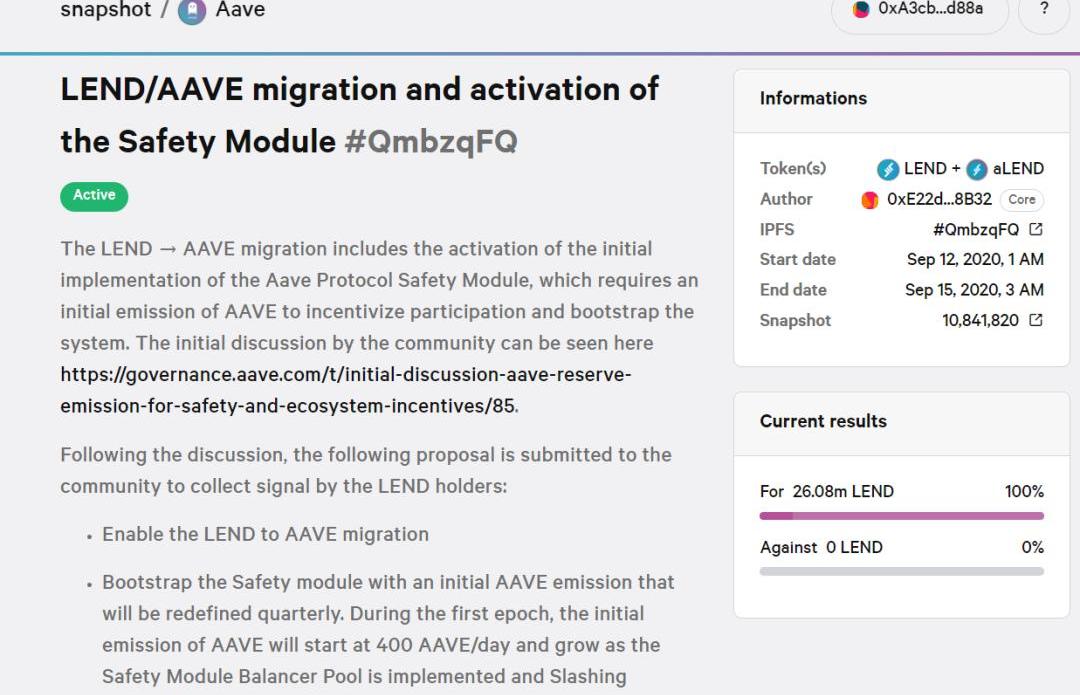如果投票被通過的話,那么Aave將替換LEND,Aave的流動性挖礦也將會開啟。