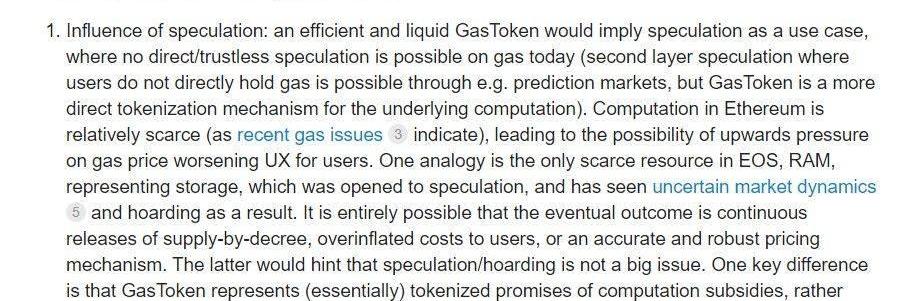 “GasToken的廣泛使用可能會浪費大量的區塊容量,推高gas價格,然后反推GasToken的使用,所以有可能出現正反饋循環。”