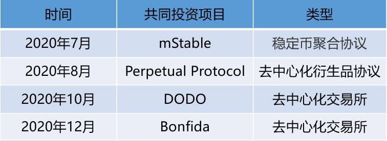 2020年7月,CMS Holdings參與SBF發起的去中心化交易所Serum私募輪融資,自此開始頻繁地協同投資,包括Perpetual Protocol、UpBots、Linear Finance、Opium協議、Bonfida、Maps.me等項目。