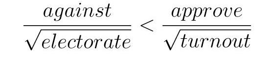 參考上圖,當全民投票的投票率只有25%時,“贊成”票的票數必須達到34%才能通過。