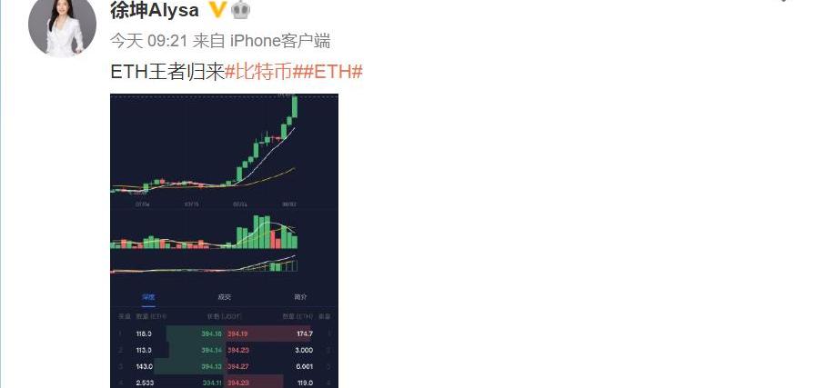 OKEx首席戰略徐坤,她是加密貨幣圈知名的以太坊粉絲,半年來,她不僅跟蹤研究以太坊,還不忘在各個平臺見縫插針般“奶以太坊”。